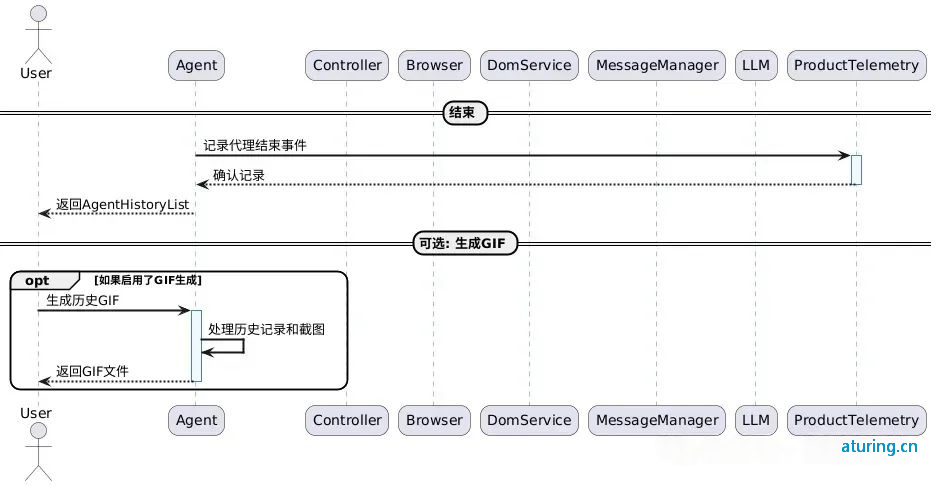 可选生成 GIF:如果启用了 GIF 生成功能,Agent 会处理历史记录和截图,生成一个展示整个过程的 GIF 文件。