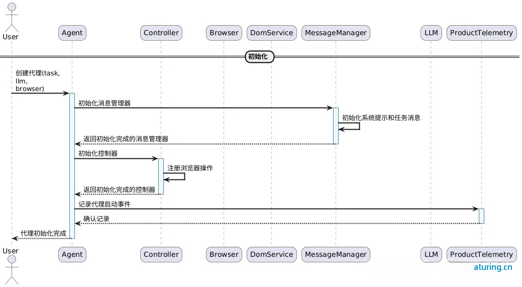 初始化消息管理器:Agent 初始化 MessageManager,设置系统提示和任务消息